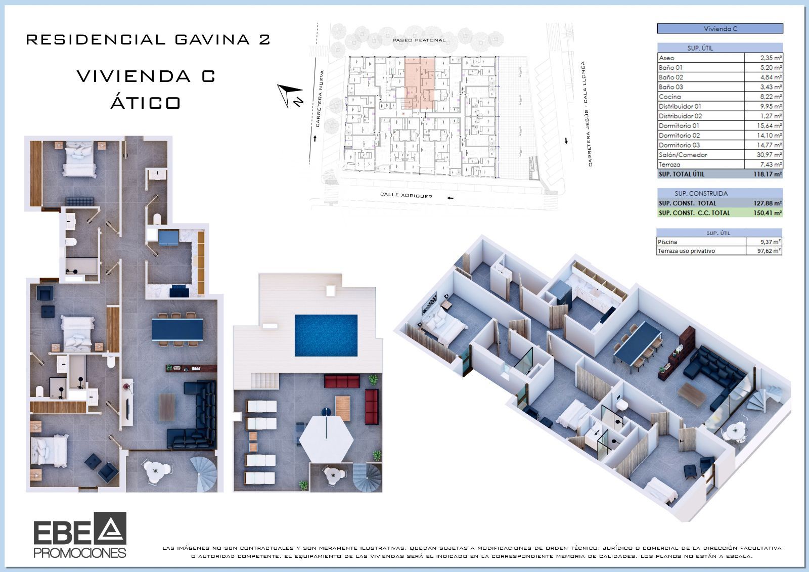 Ático en venta en Santa Eularia des Riu, con 128 m2, 3 habitaciones y 3 baños, Piscina, Garaje, Ascensor y Aire acondicionado.